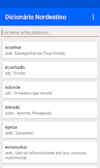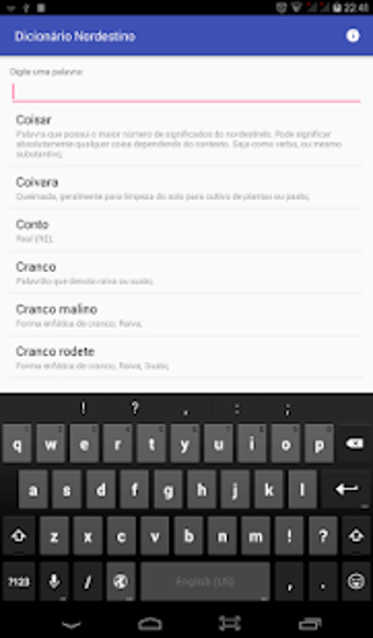 전반적으로, Dicionário Nordestino는 북동부/알라고아 문맥에서 단어를 교묘하고 간결하며 때로는 유머러스하게 제시하는 재미있고 사용하기 쉬운 애플리케이션입니다. 북동부 방언에 대해 더 알고 싶고 재미있게 배우고 싶은 사람들에게는 훌륭한 도구입니다.